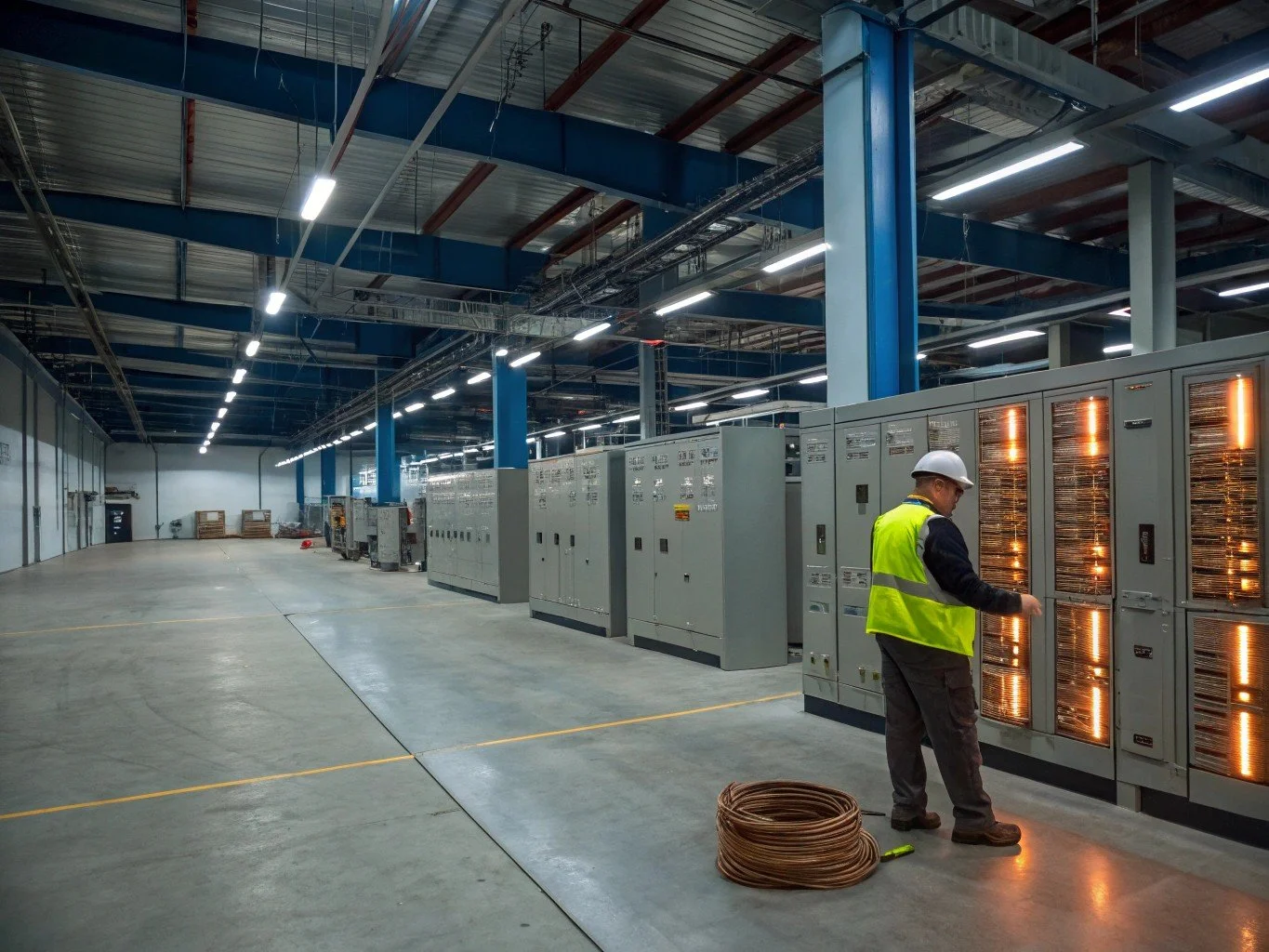 Expert installation of 277/480V, 3-phase systems, main distribution panels (MDP), and complex panelboards (like H1MA and H1B).